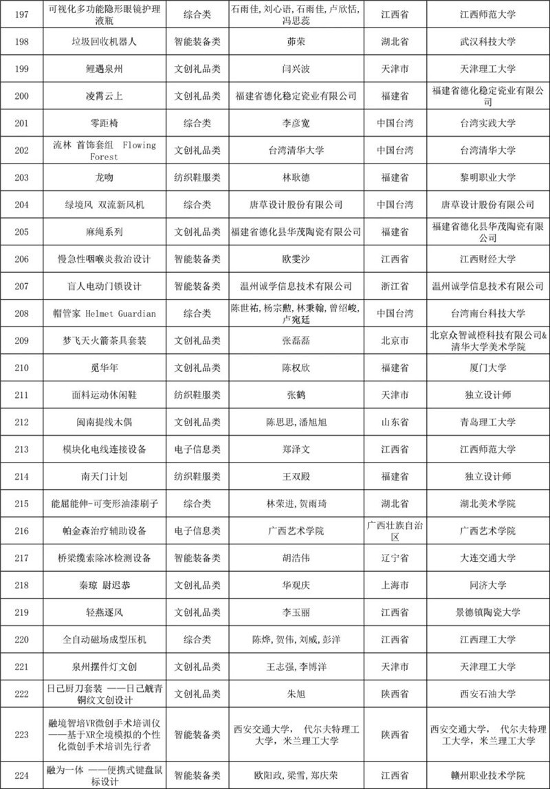 经专家初评,评选出产品组、概念组两个组别初评入围作品各300件,共计600件作品,其中大陆初评入围作品495件,港澳台初评入围作品76件,国外初评入围作品29件,初评入围作品覆盖46个国家或地区。