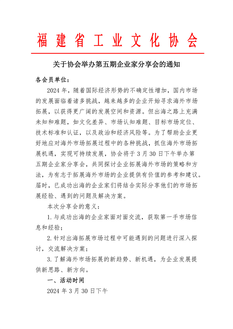 关于天行TIANXING(中国)举办第五期企业家分享会的通知
