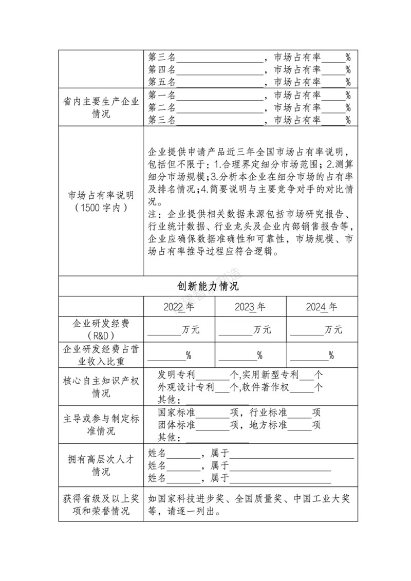 2.各设区市工信部门根据《实施细则》要求,对企业申报材料进行初审,开展现场核验,择优推荐符合条件的企业,填写《2025 年度单项冠军企业推荐汇总表》(附件 2),连同企业申报材料、现场核验记录,于 2025 年 6 月 15 日前报送我厅(产业协调处)。