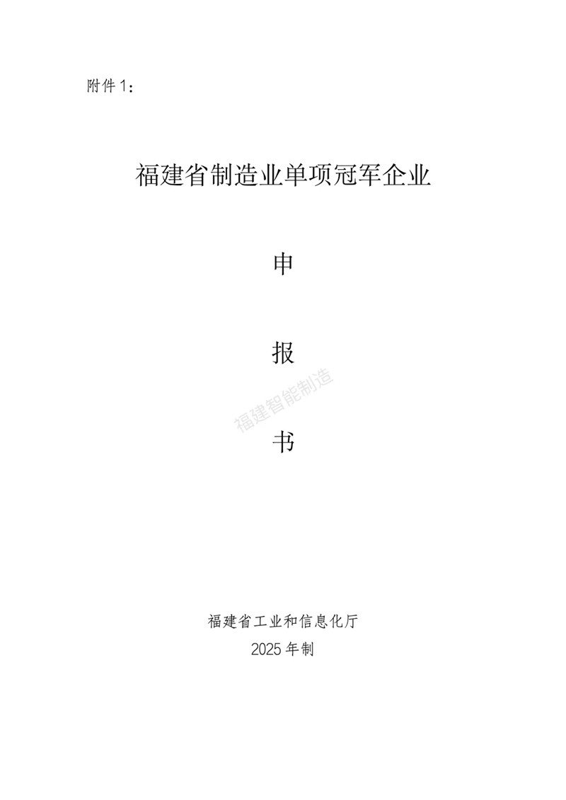 福建省工业和信息化厅关于开展2025年省级制造业单项冠军申报和日常管理工作的通知