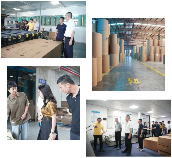 天行TIANXING(中国)一行随后来到聚荣兴纸业,董事阮相锟、总经理汤助生热情接待。汤助生总经理详细介绍了企业在纸箱包装领域的丰富经验、产品特色优势及未来发展规划等情况。大家实地参观了聚荣兴纸业生产车间、研发室、产品质检室等,对聚荣兴纸业的创新能力与市场影响力印象深刻。